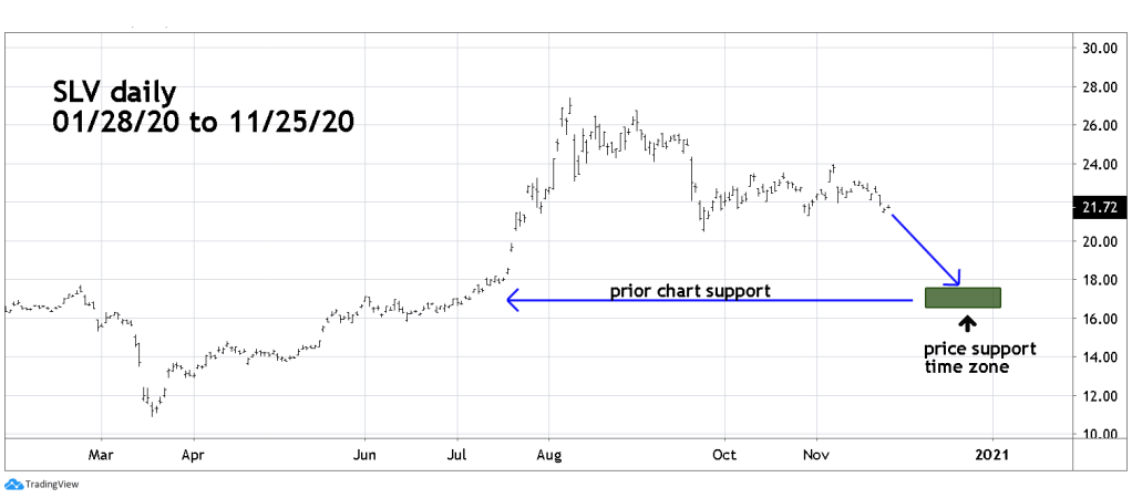 The iShares Silver Trust – Exchange Traded Fund (SLV) daily chart shows where and when SLV could make an important bottom.