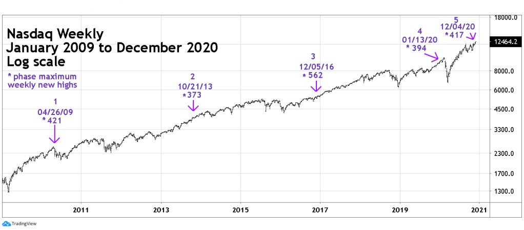 The next chart shows when each phase maximum new highs occurred.