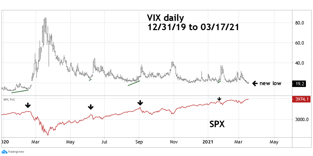 Also, the VIX made a new low for its movement down from its last major high in March 2020.