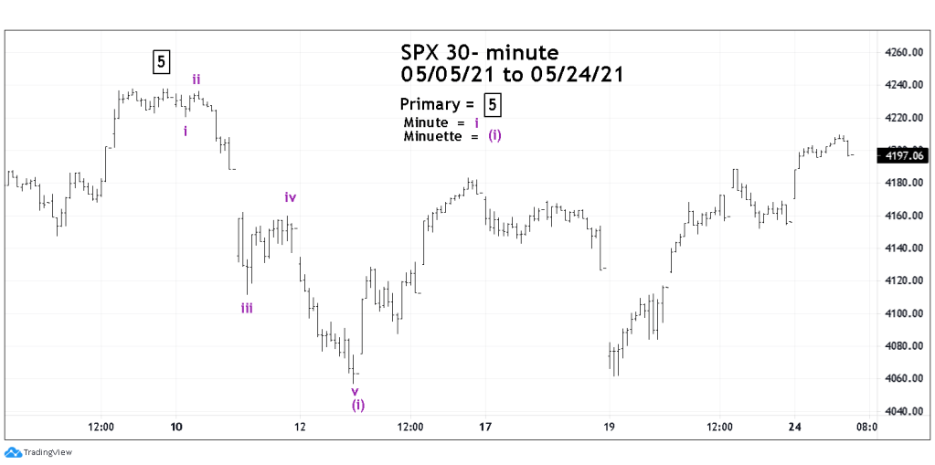 The 30-minute SPX chart courtesy of Trading View illustrates the recent action.