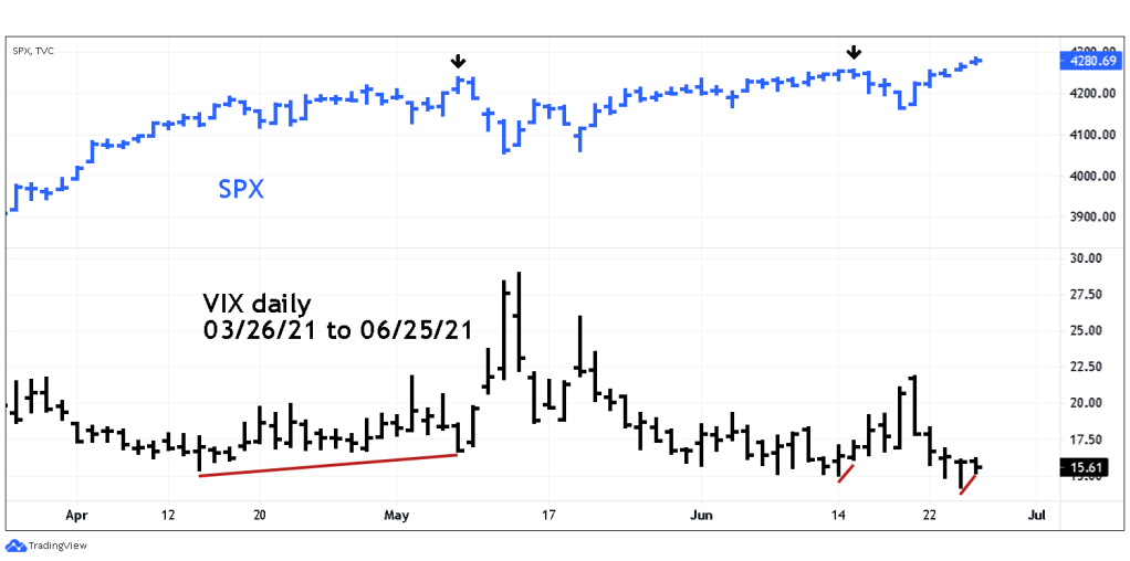 The daily VIX/SPX chart courtesy of Trading View illustrates what happened on 06/25/21.