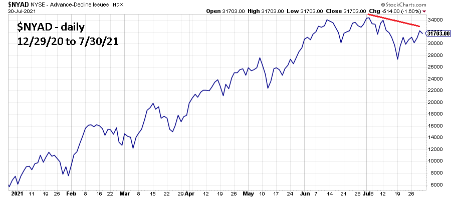 The daily NYSE – Advance-Decline Issue ($NYAD) chart illustrates its 2021 action.