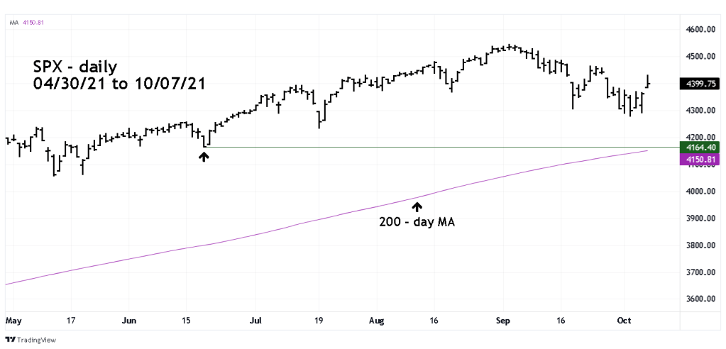 Price- the SPX 10/04/21 bottom was not near any significant Fibonacci or chart support.