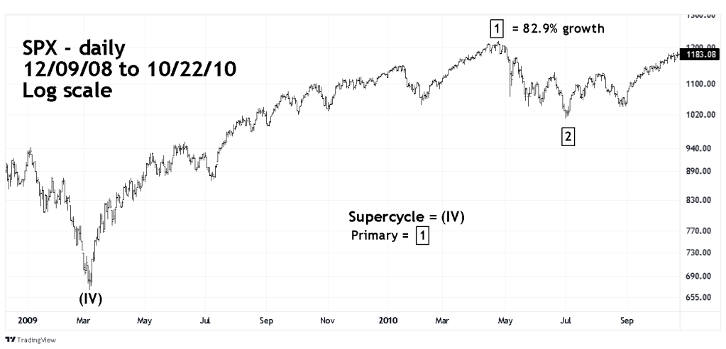 The daily SPX chart 2008 to 2010 courtesy of Trading View illustrates the presumed Primary wave “1”.
