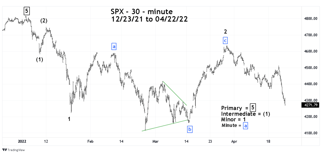 The 30-minute SPX chart courtesy of Trading View illustrates the wave count.