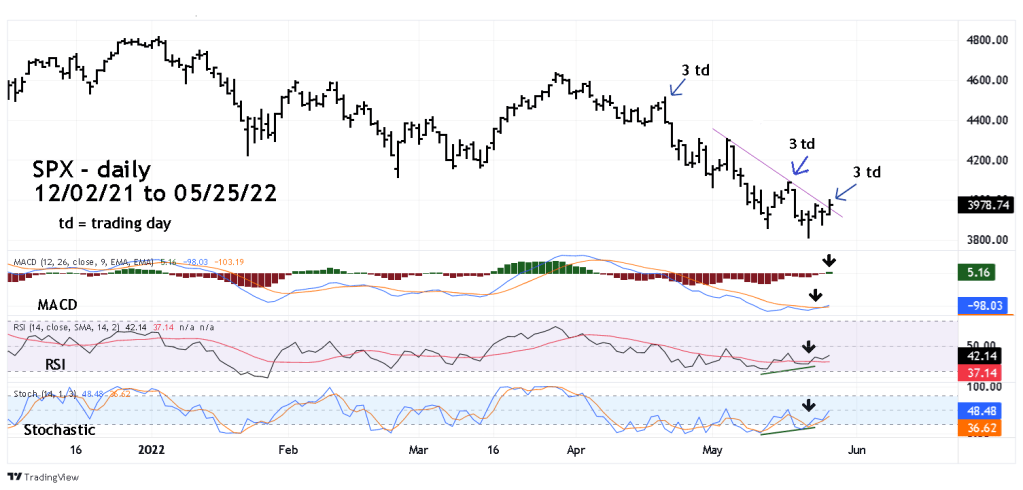 The daily S&P 500 (SPX) chart courtesy of Trading View illustrates considerable bullish evidence.