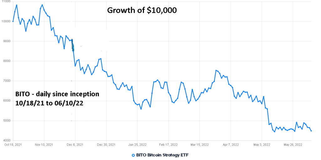 If Bitcoin follows the path of previous speculative manias, in one- or two-years BITO will grow from $10,000 to $900.