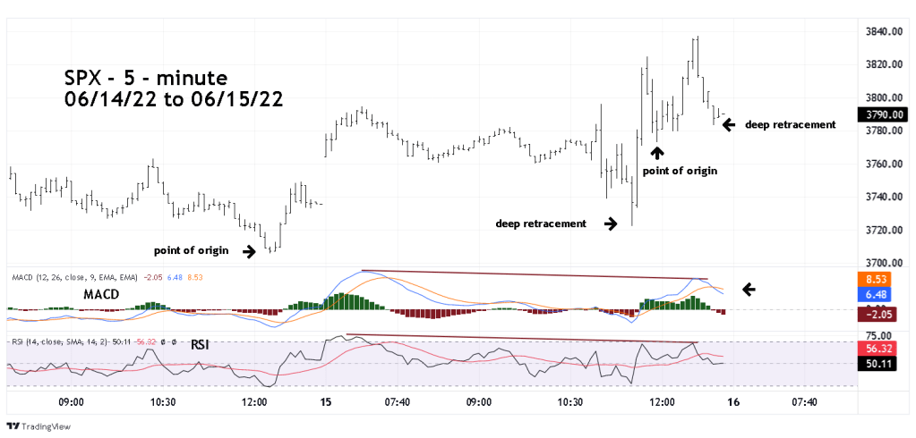 The S&P 500 (SPX) 5 – minute chart courtesy of Trading View illustrates the action.