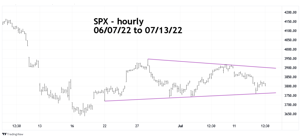 The hourly SPX chart zooms in on short-term trendlines.