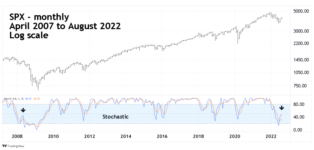 This is an update of the chart illustrated in the 07/30/22 blog “Market Fuel Gauge” the monthly Stochastic is now at the same general area as the SPX March to May 2008 rally.