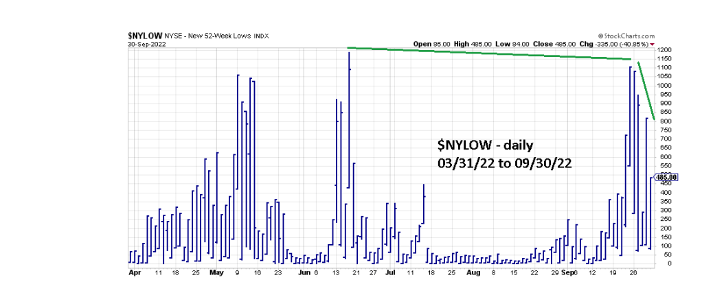 In late September the NYSE index (NYA) made new bear market lows yet, $NYLOW not only had a bullish divergence vs. it’s mid- June readings – new lows collapsed!