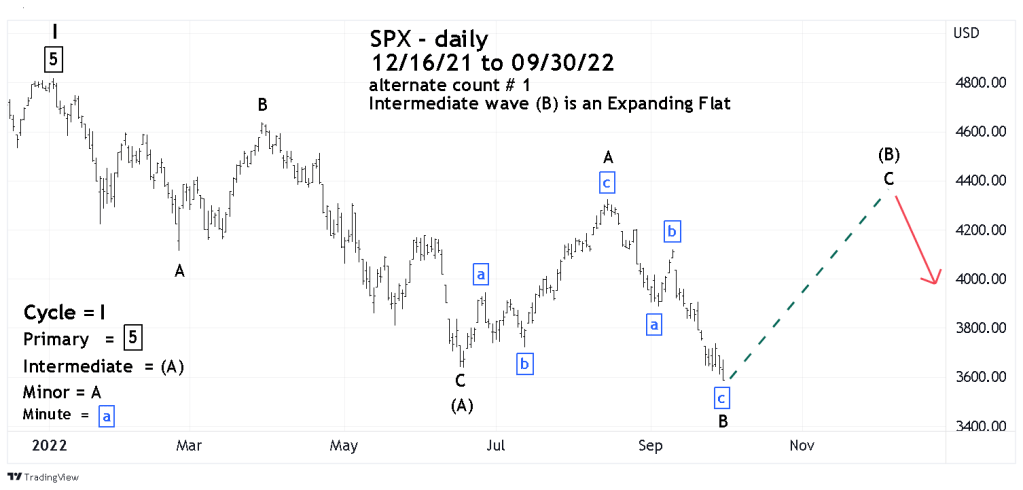 As of 09/30/22 momentum and sentiment evidence implied the S&P 500 (SPX) could be forming a double bottom vs. its mid – June 2022 low. This blog examines two possible Elliott wave alternate bullish counts.