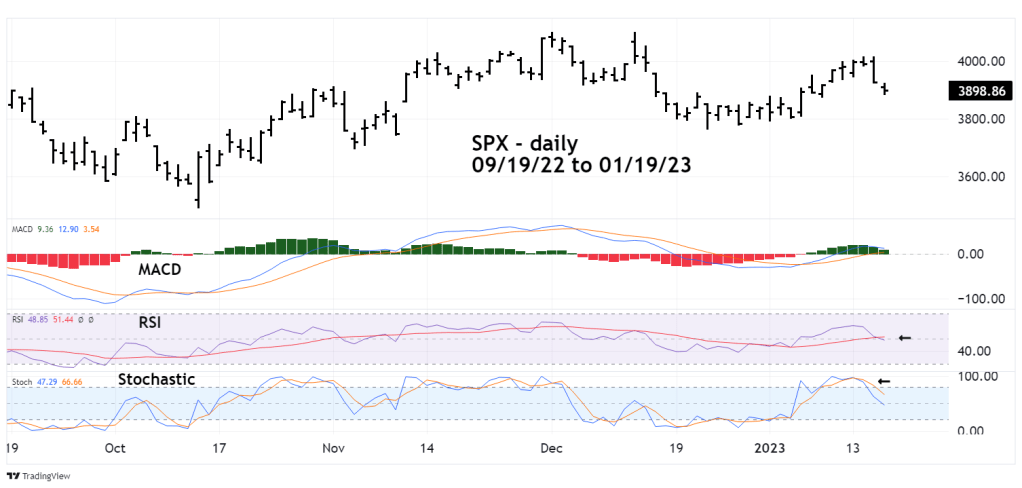 On 01/19/23 the S&P 500 (SPX) continued its post 01/17/23 decline with an additional bearish momentum signal implying further downside action.