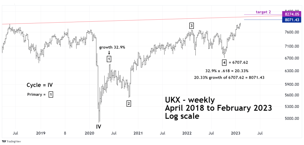 The weekly UKX chart illustrates the intermediate view.