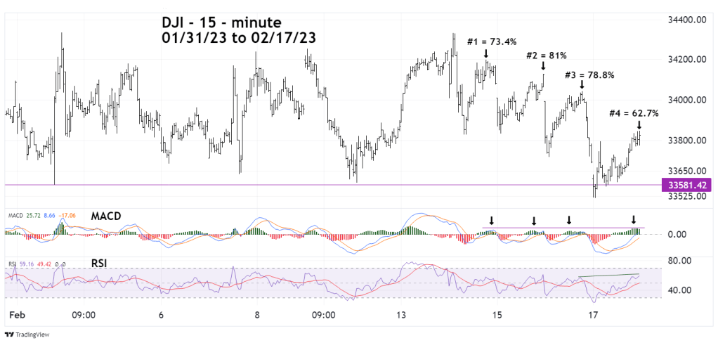 The 15 – minute DJI chart courtesy of Trading View illustrates the action.