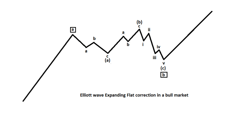 The chart illustrates a textbook Elliott wave – Expanding Flat.