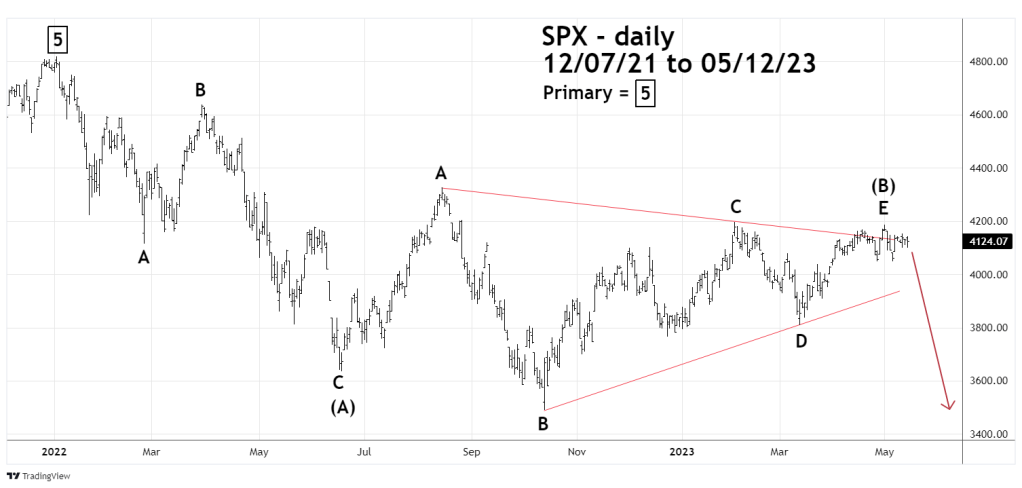 The five – wave SPX drop from 05/01/23 to 05/04/23 could be just the first wave down of a larger – possibly much larger developing bear move.