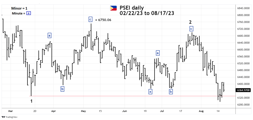 The 07/15/23 blog “Philippine Stock Exchange an Elliott Wave Tutorial” illustrated that the Philippine Stock Exchange (PSEI) could be rising in an Elliott wave – Double Zigzag pattern.