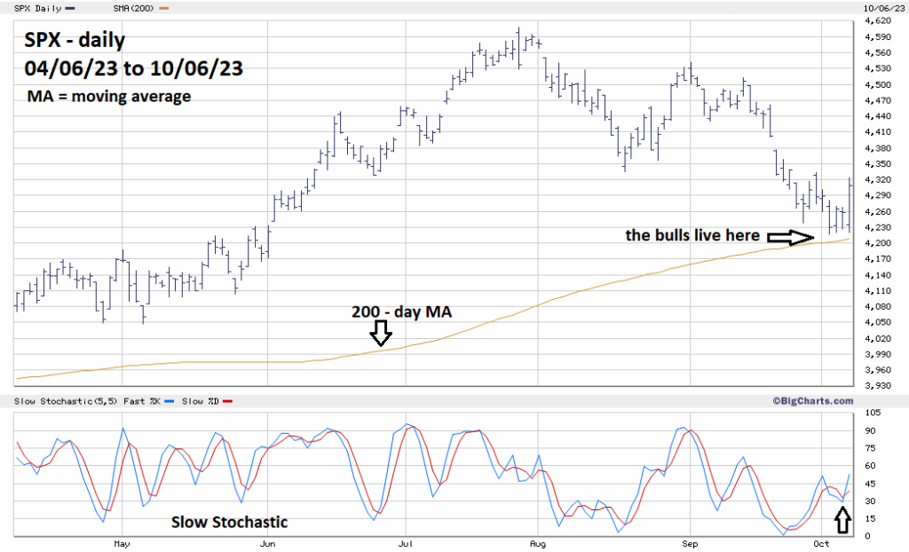 BigCharts.com – Slow Stochastic is one of the most effective price oscillators. On 10/06/23 there was another bullish lines cross. Most importantly, the lines are in the middle of the neutral zone. The SPX could rally more than 100 – points from its 10/06/23 close with the Slow Stochastic line below 80% – overbought.