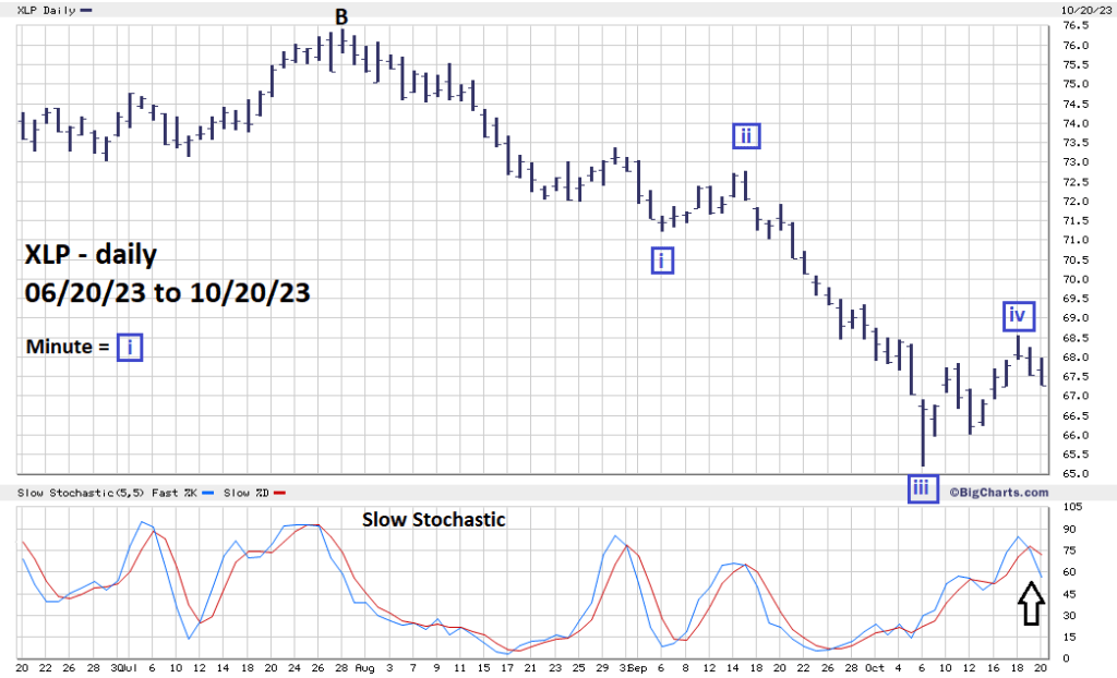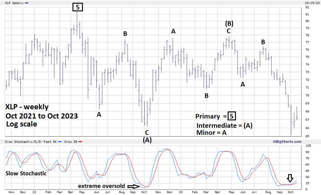 From an Elliott wave perspective, the action after April 2022 appears to be a classic Double Zigzag correction. Note recently XLP went below its October 2022 bottom.