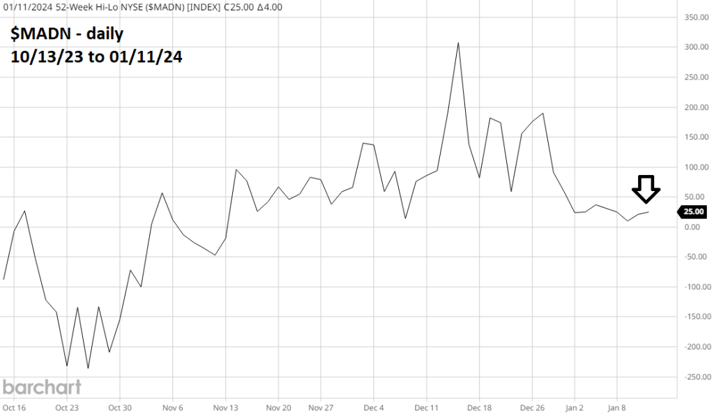 The daily NYSE – 52 – week Hi – Lo ($MADN) updates internal momentum.