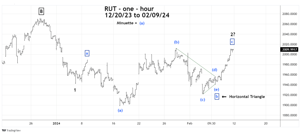A significant decline for U.S. stocks could begin within the next two trading days. Based on Elliott wave analysis of the Russell 2000 – the decline could begin on 02/12/24.