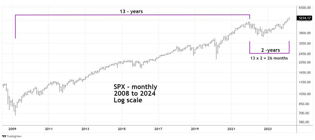 The next monthly SPX chart shows the action from 2009 to 2024.