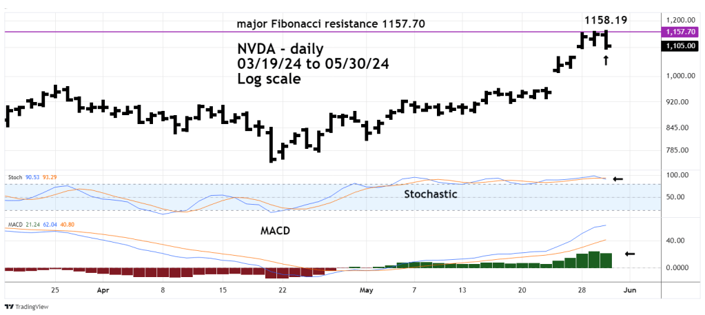 NVDA then declined from 1,158.19 and closed below its 05/29/24 session low.