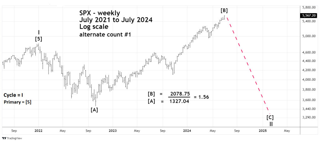 The first weekly SPX chart courtesy of Trading View illustrates the presumed developing Expanding Flat.