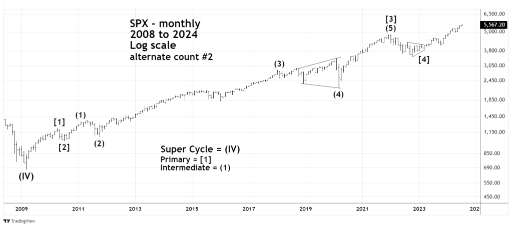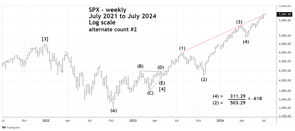 This Fibonacci relationship and the smoothness of the SPX rally since May 2023 increases the probability that an alternate wave count could be developing.