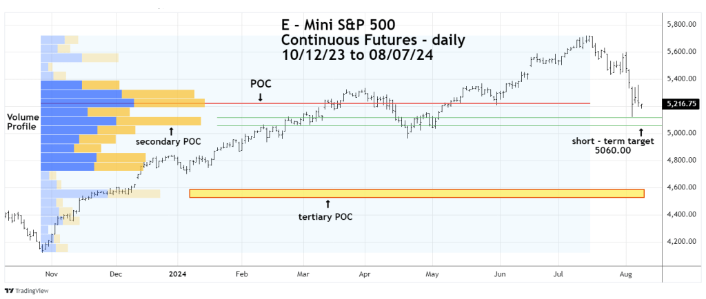 Volume Profile analysis indicates where the S&P 500 could find support during the month of August 2024.
