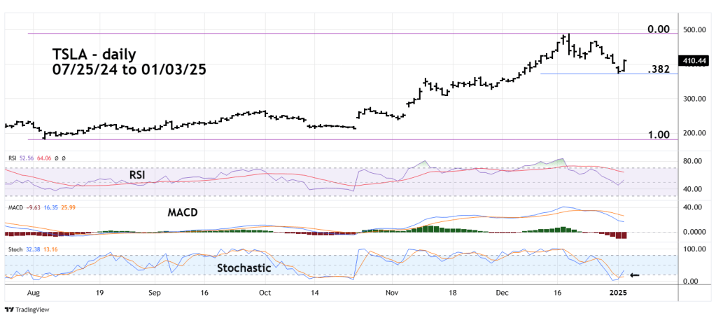 The most important message comes from price. The 01/02/25 bottom came right at a Fibonacci .382 retracement of the 08/05/24 to 12/18/24 rally. Also note the 12/18/24 to 01/02/25 decline was an Elliott wave – Single Zigzag correction.