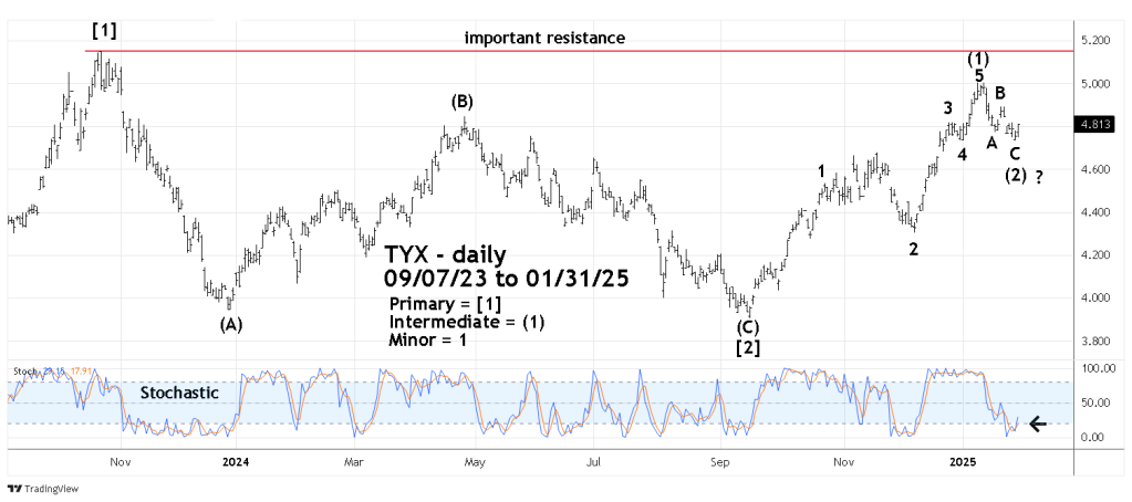 TYX ended the 01/31/25 session at 4.813, there’s a high probability it could reach the major peak made in October 2023 at 5.152.