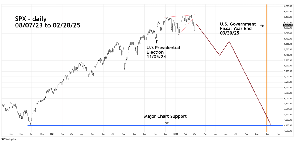 The U.S. fiscal year ends 09/30/25 which corresponds with seasonal U.S. stock market bottoms in October. The federal reduction in force has just begun and is likely to continue for several months. The cost reductions may not be limited to personnel. For example, President Trump has ordered the U.S. Treasury to cease production of the U.S. One Cent coin. It costs three cents to make this coin – which makes no sense.