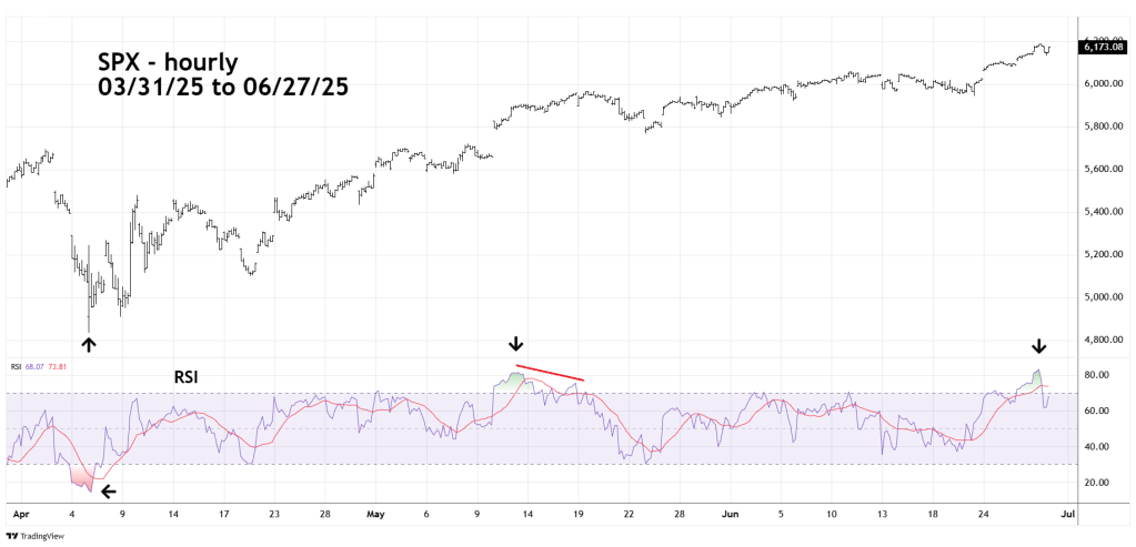 If the SPX can make a new all-time high on 06/30/25 there’s a very good chance hourly RSI could have a bearish divergence.