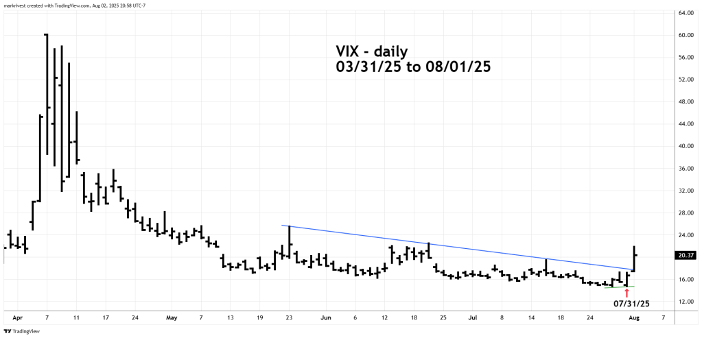 The 07/23/25 blog “Bullish VIX Signal – 07/23/25” illustrated that the VIX making a new post 04/07/25 low indicated the SPX could continue to make new highs, which it did.