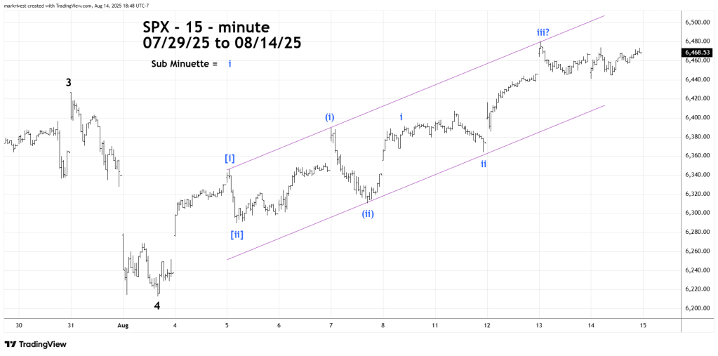The SPX 15 – minute chart zooms in on the action after the 08/01/25 bottom.