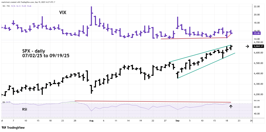 The SPX high on 09/19/25 was 6,671 and ended the session at 6,664.