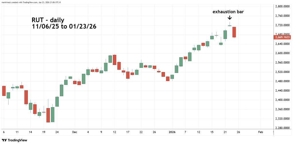 If RUT ends the 01/26/26 trading day below the 01/23/26 low, it could trigger a multi- week decline for U.S. stocks.