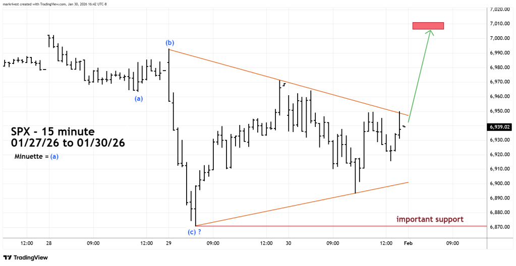 However, the form of the post 01/28/26 decline looks like an Elliott wave corrective pattern. If so, there could be a marginally new SPX high on 02/02/26.