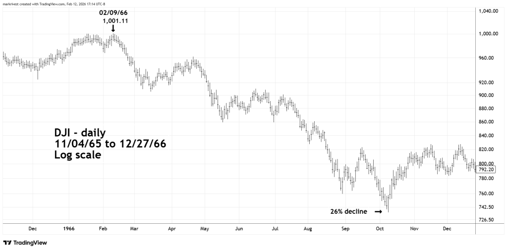 After the February 1966 peak DJI went into a multi-month 26% bear market.