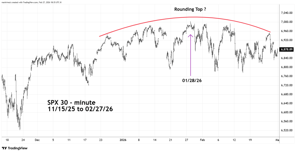 The 30 – minute S&P 500 (SPX) chart courtesy of Trading View shows what’s been happening.