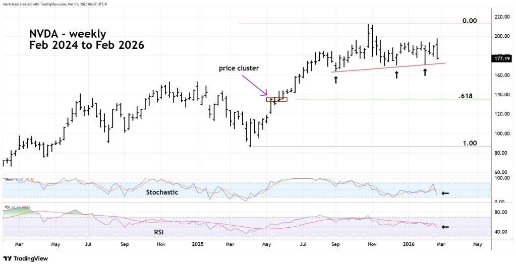 The weekly NVDA chart courtesy of Trading View illustrates the long – term picture.
