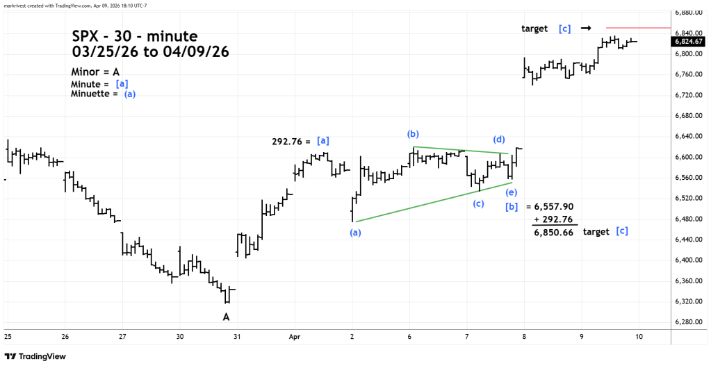 The 30 – minute SPX chart – Trading View symbol (SPX) shows a possible Elliott wave count.